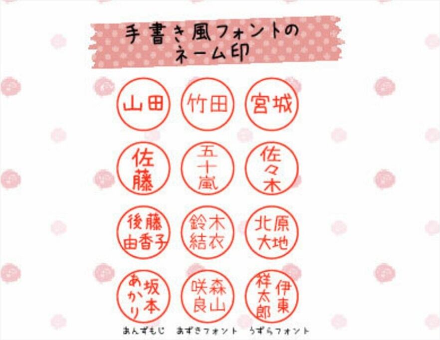 手書き風フォントなら子供っぽくなり過ぎず、個性的でかわいいネーム印が出来上がります。